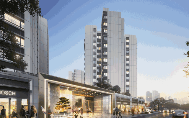 在建筑设计上,项目以现代构成为基调,重视比例,删繁就简,运用高端铝板、全中空low-e玻璃来打造简约雅致的现代化立面