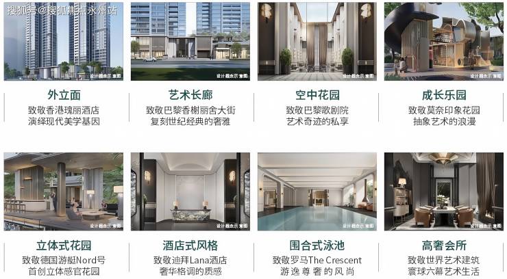 项目以高端住宅,现代美学立面,超高窗地比。还规划了艺术长廊、空中花园、成长乐园及1800㎡高端会所等。