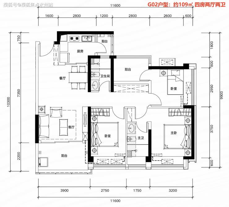 约109㎡四房两厅两卫:阔绰大四房,尺度舒居,二孩家庭或是三代同堂,皆能各得其乐,是精英家庭一步到位的理想之选。部分独立入户,营造归家仪式感,主卧套房带衣帽间,尽显宽居气度。