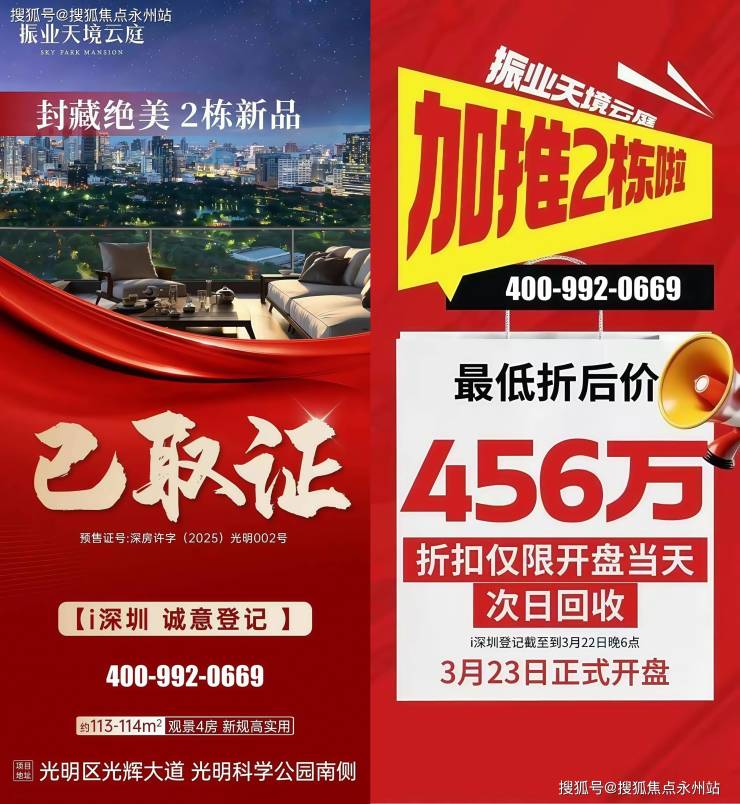 项目原是振业集团在2023年3月份以10.29亿+竞配3000平竞得的光明新湖A650-0385宗地,商品房毛坯限价4.93万/㎡,也是光明中心区板块首个一线看科学公园的新楼盘,东北向的视野景观非常靓,科学公园全貌一览无遗。(深圳振业天境云庭售楼处电话:400-992-0669)