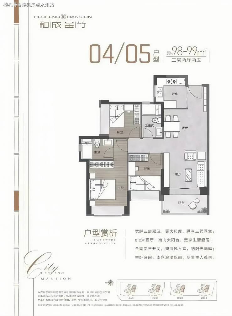 精制3房 甄选一线知名品牌:约88-99㎡精制3房,考究空间布局,户户方正实用;入户、起居、厨房、卫浴、收纳等五大精装系统,优选国内外知名品牌,大手笔配置,为城市精英营造极具品质感的美好生活方式