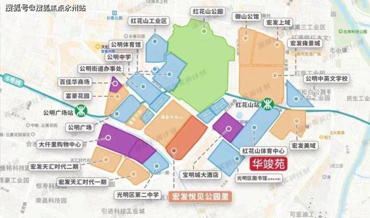 华竣苑位于光明区马田街道新庄社区振明路与荣兴路交会处东南侧,在建发小巨蛋对面,边上是红花山体育馆。