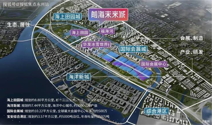 项目所在会展海洋城是前海扩容后的新中心,规划为“三城一港”(国际会展城、海洋新城、会展田园城、综合港区),聚焦会展经济、海洋经济及冰雪文旅产业。周边配套全球最大国际会展中心(32万㎡)、华发冰雪世界(在建)及金蚝小镇历史街区,形成产业+文旅双驱动格局,吸引高端人才与资本聚集。