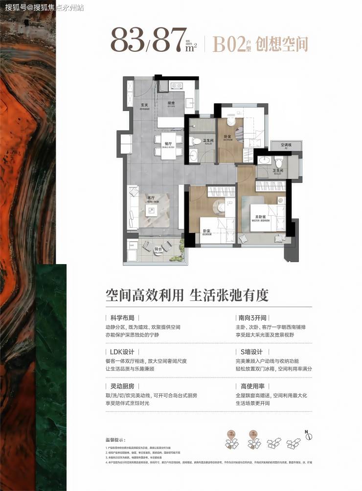 83-87㎡ 3房2卫(竖厅)