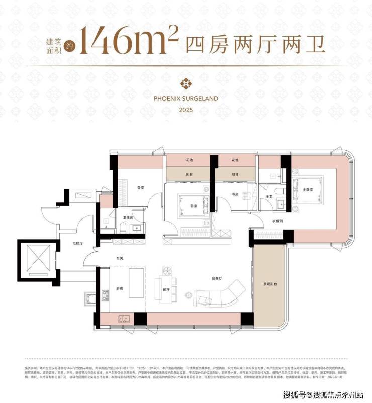 改善型阔绰四房:建面约127-146㎡(4房2厅2卫)项目主力改善户型,得房率提升至105%,全部配备专梯入户,55米超宽楼间距确保无视野遮挡,兼顾家庭社交与私密需求。