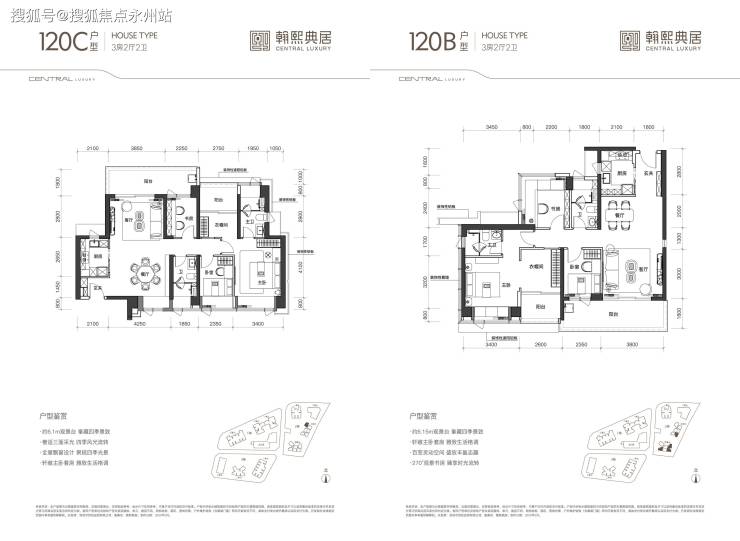 120㎡户型折后总价约1038万起,折后单价8.6万起