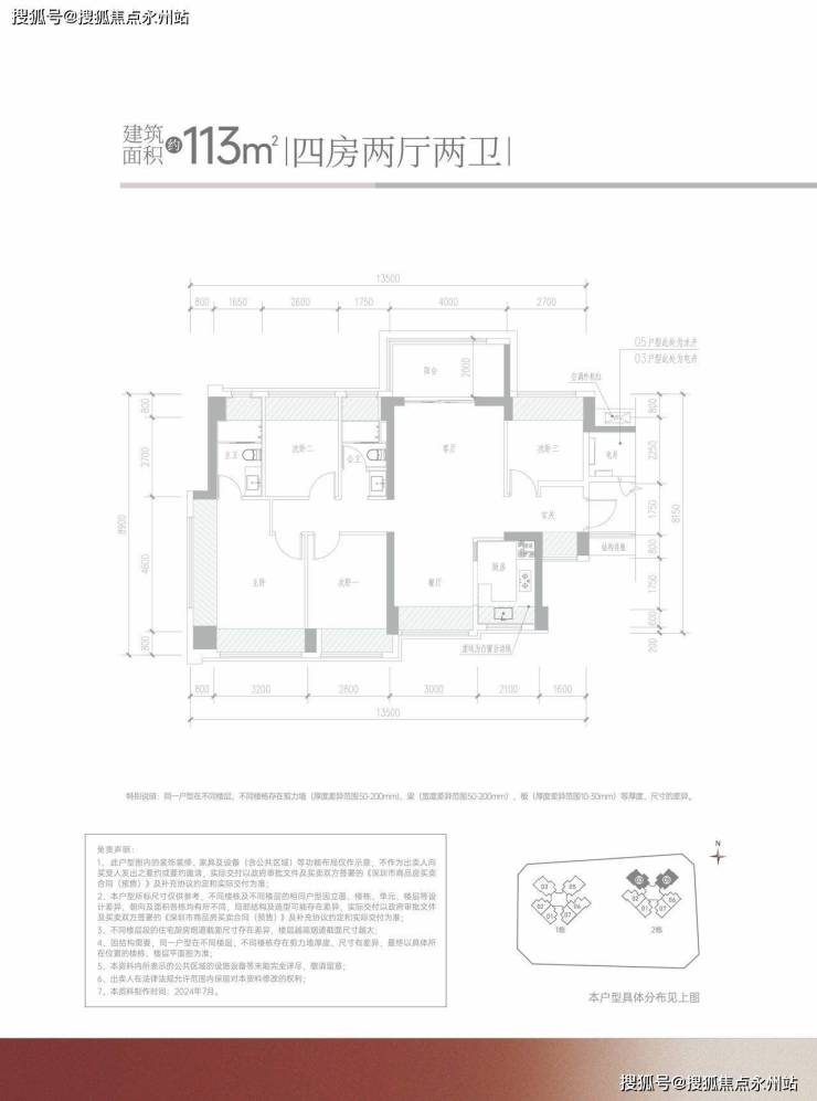 113㎡的4房2厅2卫:设计的竖厅南北通透格局,客厅4米开间,进门独立玄关,4个卧室分别做到了4米/2.8米/2.7米/2.6米的宽度,U型厨房,公卫三段式分离设计,得房率约:95%(包含赠送),阳台主朝西北或东北向,看科学公园景观。
