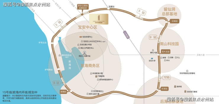 【前海内环加持 连接城市未来】地铁15号线(规划中)作为深圳首条环线轨道,起终点均为前海站,作为战略上的“产业线”,极速串联前海、宝中、大铲湾“腾讯科技岛(在建中)”、南山科技园、后海总部基地、留仙洞总部基地等高端产业密集区,推动资金流、人才流、技术流汇聚,构筑“前海内环”经济大动脉。