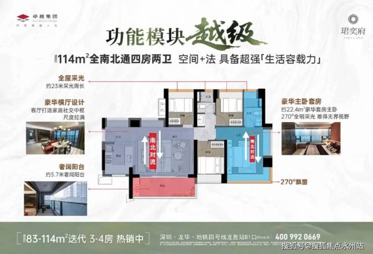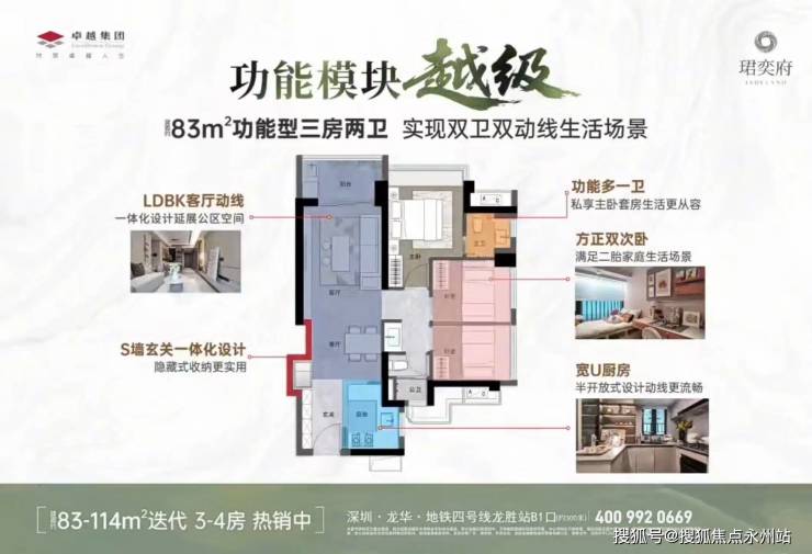 龙华【卓越珺奕府】凭借其高性价比和完善配套在市场中占据重要地位,项目二期正处于热销阶段,近期刚于2025年12月5日加推5栋新品。建面83㎡的3房2卫,92-114㎡的4房2卫户型,共322套房源,合同约定在2027年6月30日带精装交房。过来看房提前拨打开发商售楼处400电话:400-992-0669(无分机号,中介勿扰)
