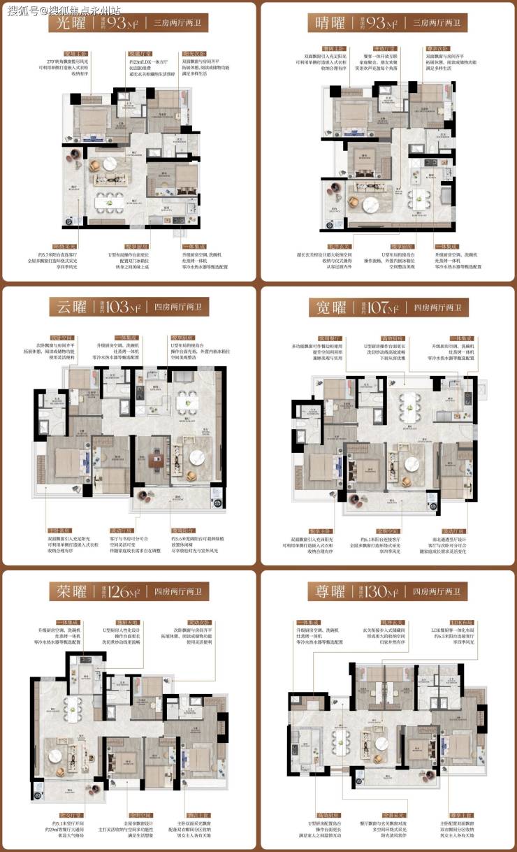 主力户型:93-130㎡全南向三至四房,涵盖横厅、竖厅、方厅等多元设计,得房率约90%(新规户型优势显著)。