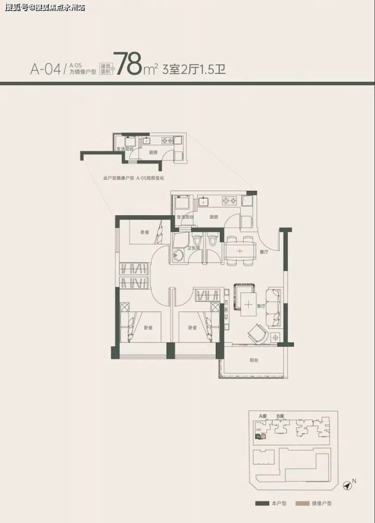 78㎡3房1卫 (户型04.05)58套