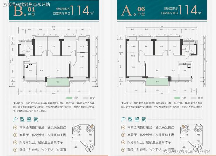 114㎡的4房2厅2卫,设计的是横厅南北通透格局,进门入户玄关,客餐厅6.15米开间,LDKB一体化设计,4个卧室分别做到了主卧17.9㎡/次卧10.11㎡/次卧9.05㎡/次卧8.69㎡(包含墙体飘窗),U型厨房,公卫三段式分离,得房率约76.2%(不含赠送),阳台主朝西南或东南向。