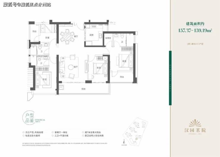 157㎡户型 四房三卫:竖厅结构,西南向,看塘朗山景,阳台设置的比较满,基本赠送做足了,双面宽主阳台,双套间,家里有老人住进来一点压力都没有,4个卧室有三个都有阳台,确实挺爽的,很有特色的户型