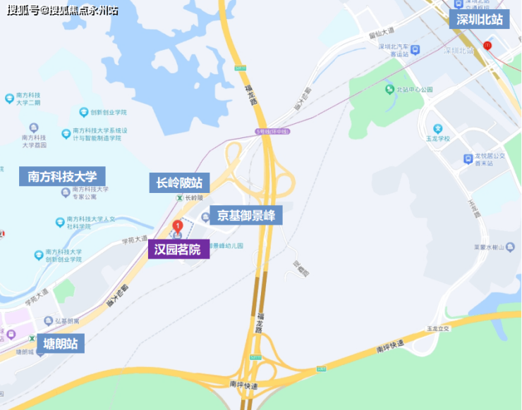 「汉园茗院」位于南山区西丽街道大学城片区,在南方科技大学东侧,距离5号线长岭陂地铁站仅150米,交通便利,一站即可到达深圳北站