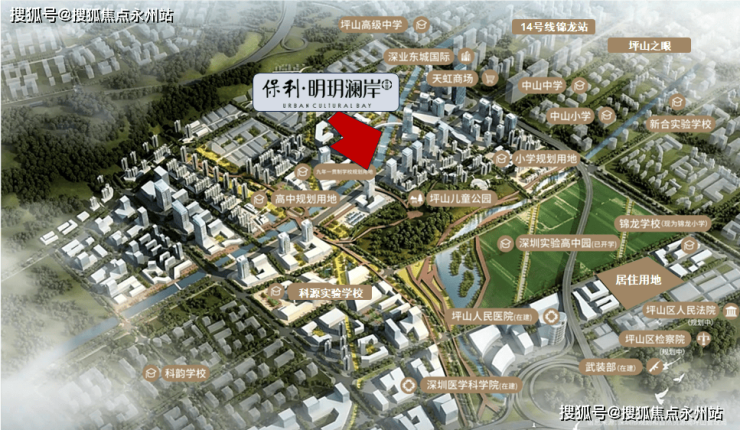 项目位于坪山沙湖板块,沙湖板块规划了世茂粤湾壹号(在建中)、华侨城综合体(在建中)天际地标,未来将打造超百万方创新企业总部基地、东部的商务中心,未来区域发展潜力较大。保利首进坪山,占位沙湖核心位置,以精工匠造“玥”系高端精装标准,精品入户大堂,对位现代人居品质需求,打造区域标杆。项目总占地约4.89万方,总建面约25万方,容积率4.5,交通通达性较好,周边一高铁、三地铁、四快速通达全城,周边自然环境优越,南向紧临坪山河景观。
