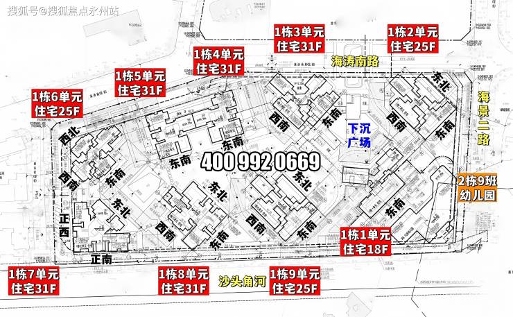 驭海隽府一期,总占地面积约3.01万㎡,总建筑面积约22.7万㎡,计容建筑面积约17.59万㎡,容积率5.27,绿化率40%,共由9栋18-31层高住宅组成,其中1栋1单元住宅18F,1栋2/6/9单元住宅25F,1栋3/4/5/7/8单元住宅31F,2栋是1所9班制幼儿园。(深圳盐田驭海隽府售楼处电话:400-992-0669)
