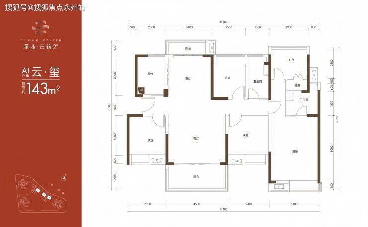 143㎡的5房2厅2卫,折后总价539-589万/套,单价3.76-4.11万/㎡。