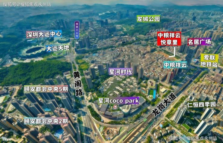 祥云悦章里,位于龙岗区龙城街道爱联社区如意路与余岭西路交汇处,地处大运新城+龙岗中心城双核心,项目所在的大运新城定位为“产学研一体化创新智核”,重点发展高新技术、先进制造与现代服务业,周边聚集天安数据城、硅谷新城、启迪协信科技园等三大产业基地。此外,龙岗中心城作为行政与文化中心,吸引企业总部及创新资源入驻,形成“双城驱动”的产业格局,为区域经济注入活力。