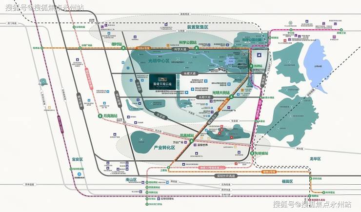 项目位于深圳光明区新湖街道光辉大道与华夏二路交汇处西南侧,地处光明科学城核心区,紧邻208万㎡科学公园,享有头排无遮挡景观视野。