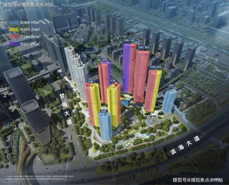 7-2地块:55-60栋,2T2/3T2配置,608套192-295㎡大平层