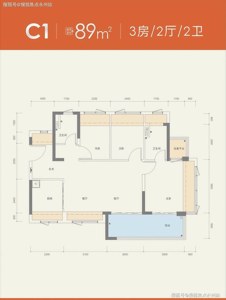 主力户型:76-89㎡三房,得房率 97%-101%(含赠送)