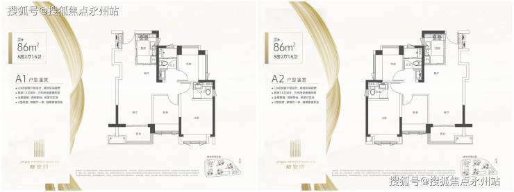 建面约86㎡产品创新打造三房两厅1.5卫,除了洗手台外置的公卫外,在主卧内还设置了具备洗手台和马桶的0.5卫,是市面上少有见到的真正的1.5卫。