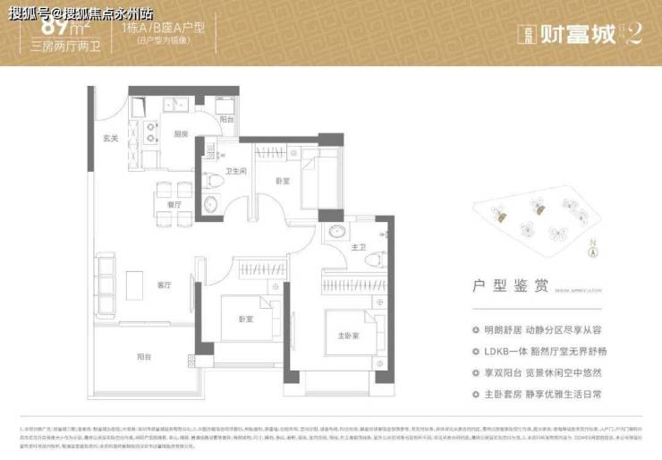 89㎡的3房2厅2卫,折后总价285-320万/套,单价3.2-3.6万/㎡。