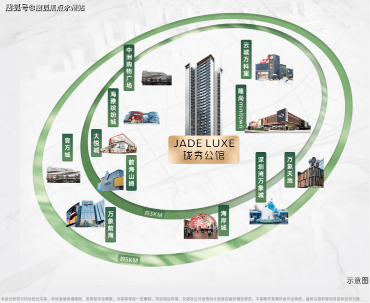 约3-5KM范围内:聚集南山前海山姆、云城万科里、万象前海、万象天地、海岸城、深圳湾万象城等高端及旗舰商业;以及宝中海雅缤纷城、大悦城、中洲购物广场等潮流商业MALL。