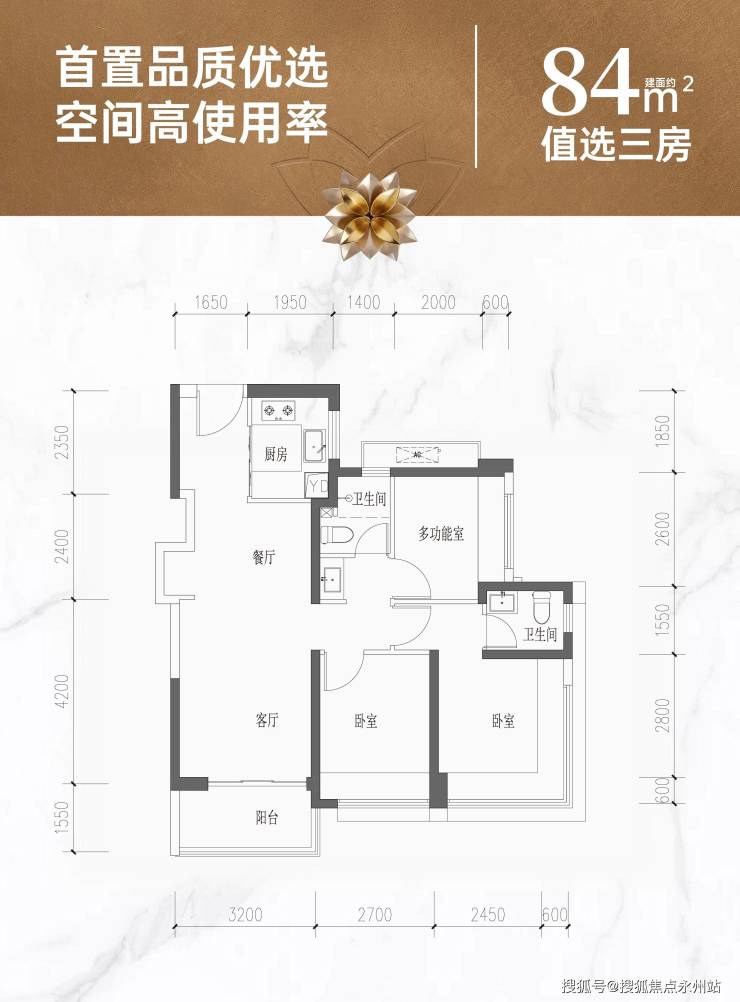 84㎡三房两卫(全南朝向)项目最低上车门槛,稀缺全南向布局,视野无遮挡,可眺望立新湖、凤凰山景观,适配刚需三口之家。