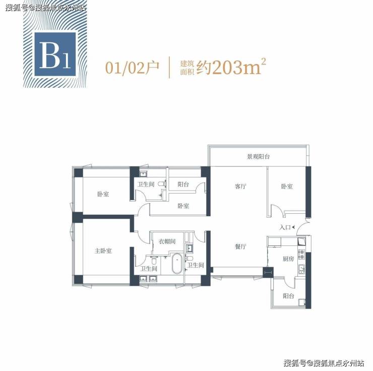 建面约203㎡:双套卧,天幕大平层,约17.6米尊崇揽景面宽,约7.4米阔尺阳台。