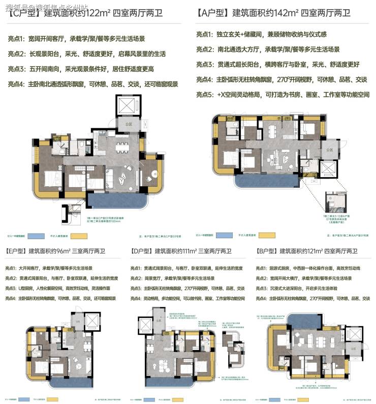 项目去年12月22日开盘卖了五成,推出319套96-108-111-121-122-142㎡3-4房改善产品。