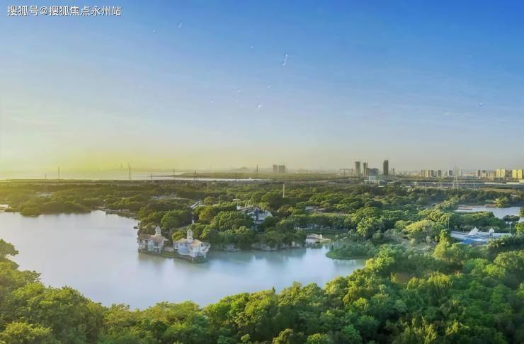 清晨推窗,远处一望无际的海岸与广阔蓝天,近处是水光潋滟、绿意盎然,一片勃勃生机。