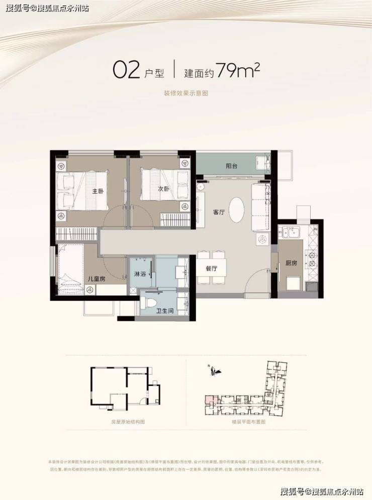 79㎡3房:真公寓,燃气已经接入每户的厨房和卫生间。与不少同面积段的住宅相比,细节与功能都做得更好。宏发经典79㎡3房户型设计,极致利用、功能完备;3面采光,卫生间可实现3分离。