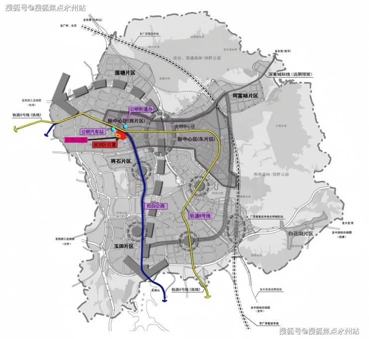 项目原公明商业中心城市更新单元,更新改造为约91万㎡城市综合体,目标打造为区域商业核心片区。