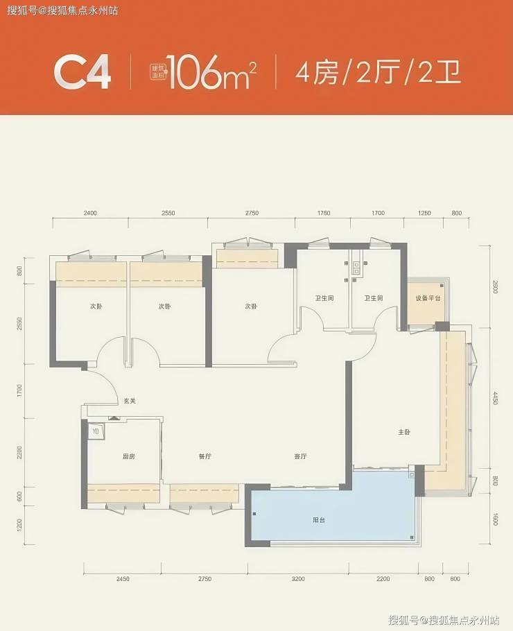 建面约106㎡大四房户型使用率提升至103%,更是将改善需求做到极致。三个次卧均赠送进深约0.8米观景飘窗,主卧赠送2个进深约0.8米的飘窗,L型飘窗设计,加上约2㎡的设备平台、约5.4米超大观景阳台贯通客厅与主卧,“双阳台+双飘窗”让室内外景观浑然天成,形成真正的无界景观面。