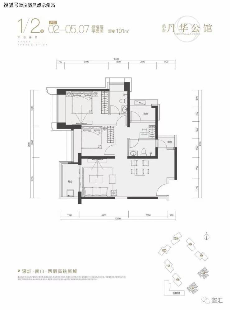 丹华公馆两个主推的户型——建面约58m²的精致小户型,及建面约101㎡的三房臻宅。
