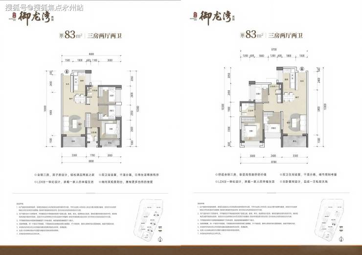设计特点:竖厅双龙抱珠格局,三开间朝南,采光通风佳,L型/U型厨房,干湿分离卫浴,功能分区合理,得房率约73.26%(不含赠送)赠送后可达79%-80%,主卧面积约10-12㎡,次卧约8-9㎡,适合刚需家庭。