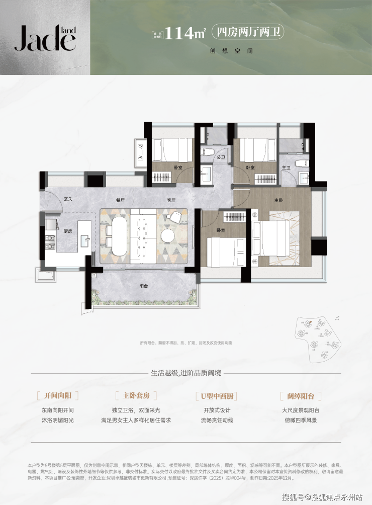最新消息:【卓越珺奕府2期】在2025年12月5日取证入市,本次加推5栋,面积有83㎡的3房2卫,92-114㎡的4房2卫户型,共322套房源,合同约定在2027年6月30日带精装交房。过来看房提前拨打开发商售楼处400电话:400-992-0669(无分机号,中介勿扰)