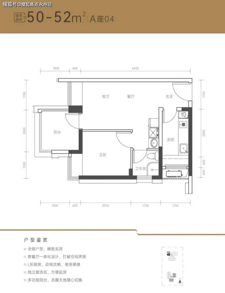 50-52㎡两房户型:全明户型,精致实用;客餐厅一体化设计,打破空间界限;L形厨房,动线流畅,使用便捷;独立盥洗区,方便起居;多功能阳台,志趣天地随心切换。