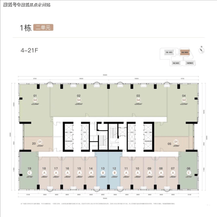 楼层高:1单元5-40层-2单4-43层元商办43层,3-4单元4-48层