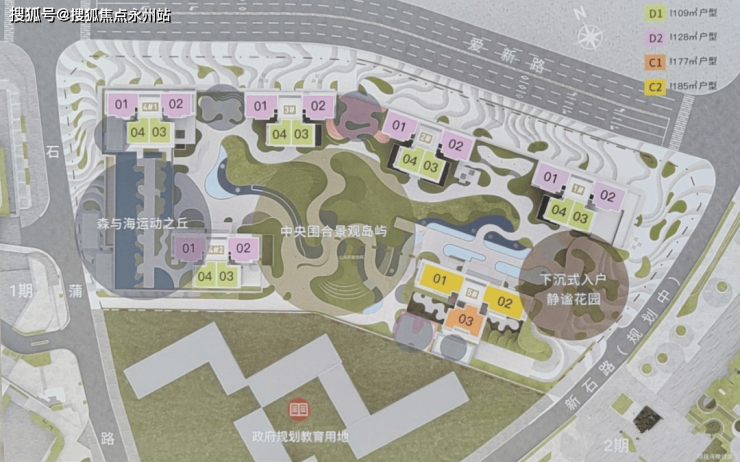 仁恒公园世纪三期地块由6座高层围合而成,其中1座、2座、5座均为总层高45层,3座及4座2单元为总层高44层,4座1单元总层高43层。除了5栋为3梯3户以外,其他5座均为3梯4户。