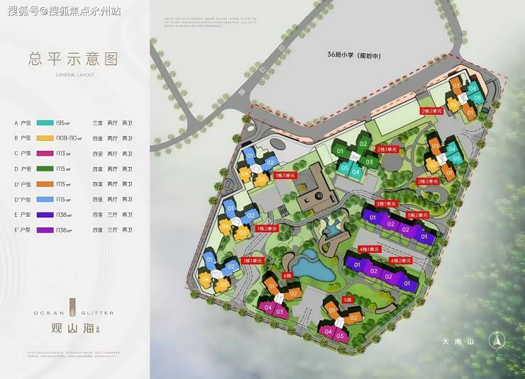 朝向与景观:01 户型西南向看小区外部及月亮湾花园,02 户型东南向直面大南山景,后者价格较前者高50万-100万。