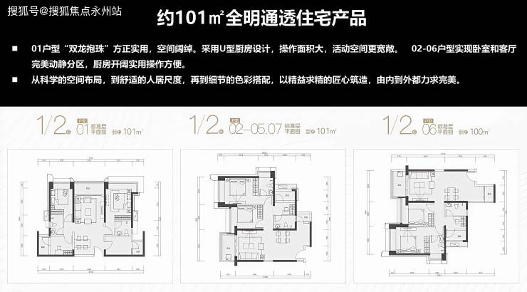 101㎡平层三房,总价区间670万-885万,单价6.63万-8.76万/㎡,层高2.95米,部分房源可看花园或公园景观,精装修交付。