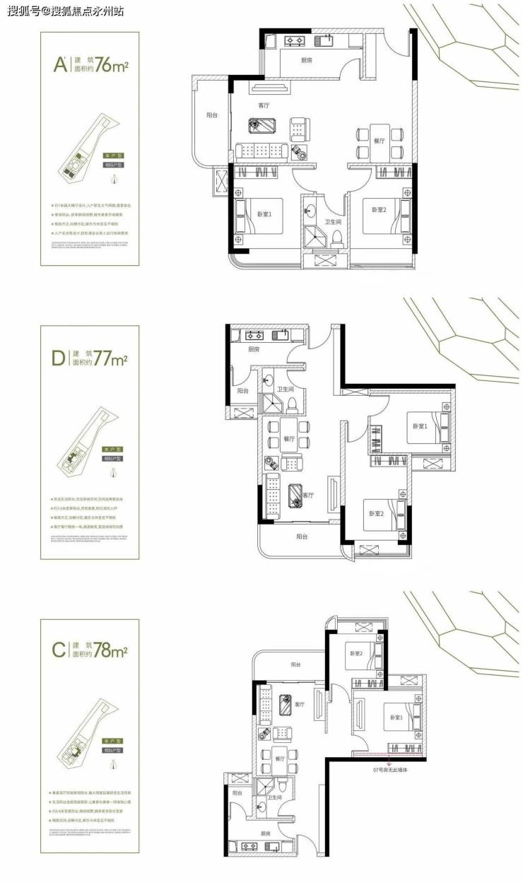 A、C、D户型:3.4-3.6m大阳台+卧室瞰景飘窗,多视觉阅览繁华多功能+1空间灵活多变,延展拓宽生活的可能阔绰厨房,卫浴干湿分离,彰显美好城市生活。