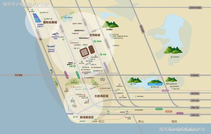 空铁新城机场东综合交通枢纽作为深圳建设国际航空枢纽与国家铁路枢纽的重要组成部分,集航空、高铁、城际、城市轨道、公交等多种交通方式于一体。目依托自身的交通优势。左连前海、右接会展。享受前海的金融利好辐射,又承载着会展的人流导入的功能。成是湾区三角中金融辐射、会展人流承载的核心地带。