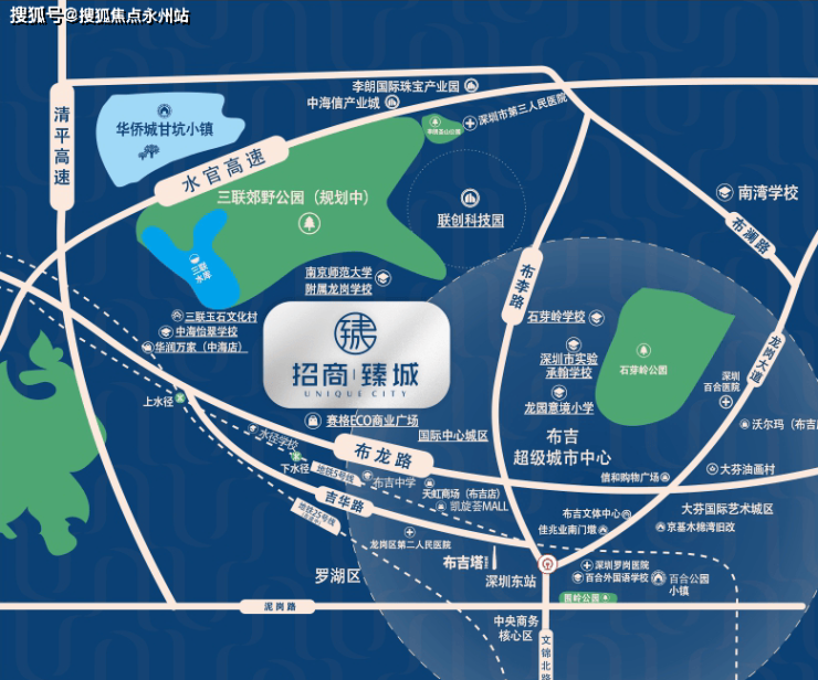 招商臻城位踞深圳中轴之上,经由布坂联络道(在建中)连通“华为工作-生活新中轴”。