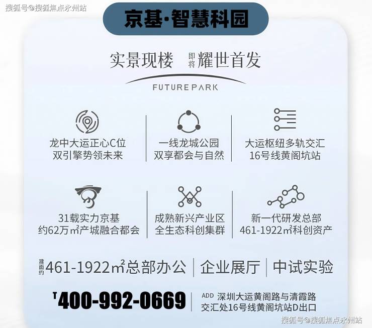 龙岗【京基智慧科园】售楼处24小时电话:400 992 0669(官方电话)现场详细解答丨项目介绍丨户型图丨在售房源丨特价房丨学校丨交通位置丨样板房丨小区图片丨交房时间丨周边配套丨