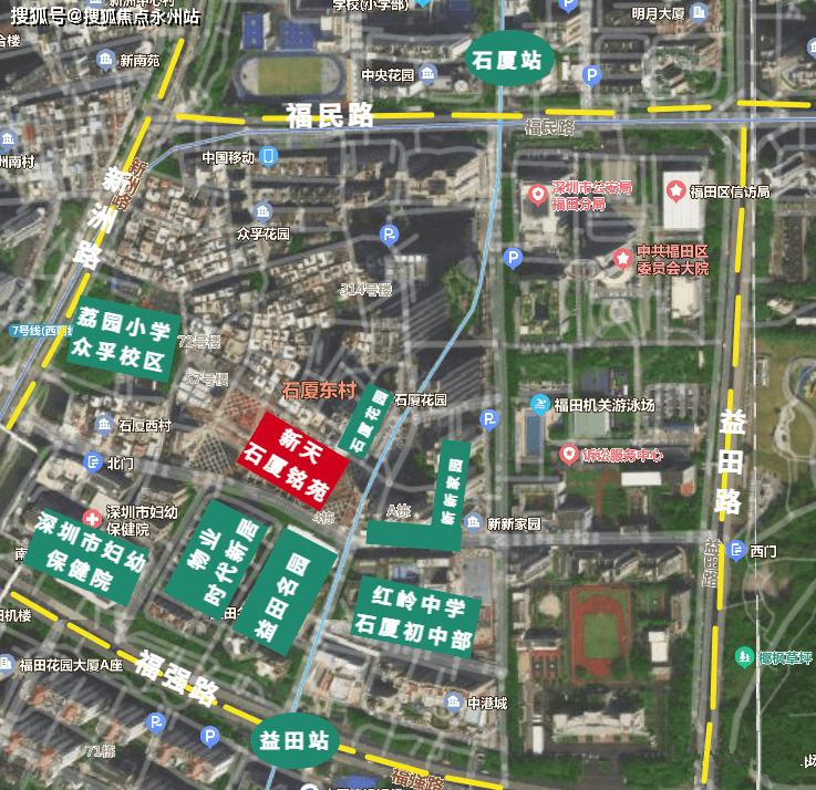 交通配套:项目南邻福强路、西临新洲路; 周边有2个地铁站,分别是3号线益田站,3/7号线石厦站,均在500米左右的距离,临近福田口岸与皇岗口岸,无缝接驳深港两地,穗莞深城际轨道(建设中)2站直达前海,联通两大深港合作区;福田高铁站,快速链接全国。
