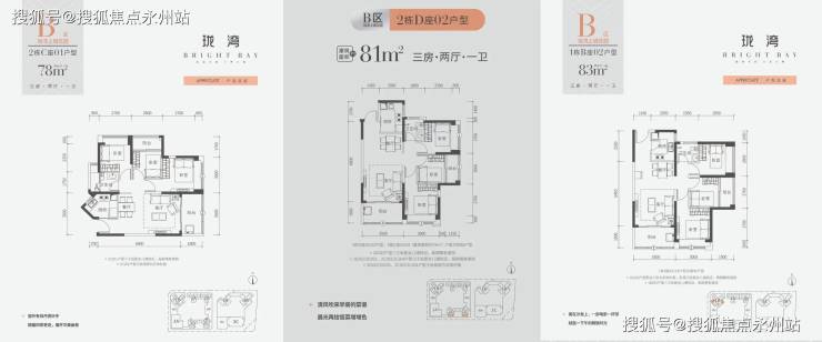 77-79㎡三房两厅一卫:这是项目的高性价比产品,被称为 "极致三房"。户型设计方正,空间利用率高,虽然面积紧凑但功能齐全,特别适合小家庭。