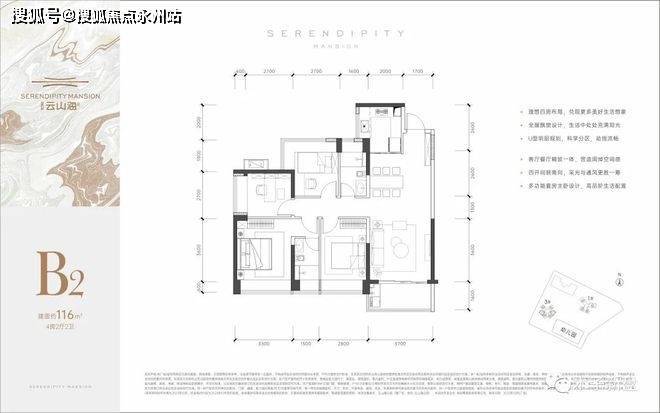 项目规划总建筑面积约19.5万㎡,包括住宅、商业(800㎡)和幼儿园等配套用房。总栋楼为4栋,36-51层,户型朝向以西南/东南为主,容积率为4.86。
